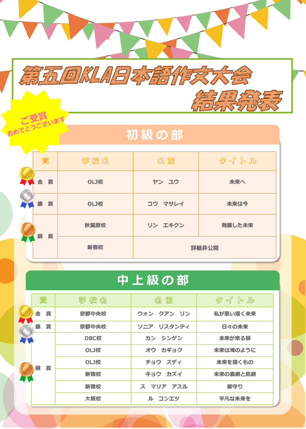 第五届KLA日语作文大赛结果公布