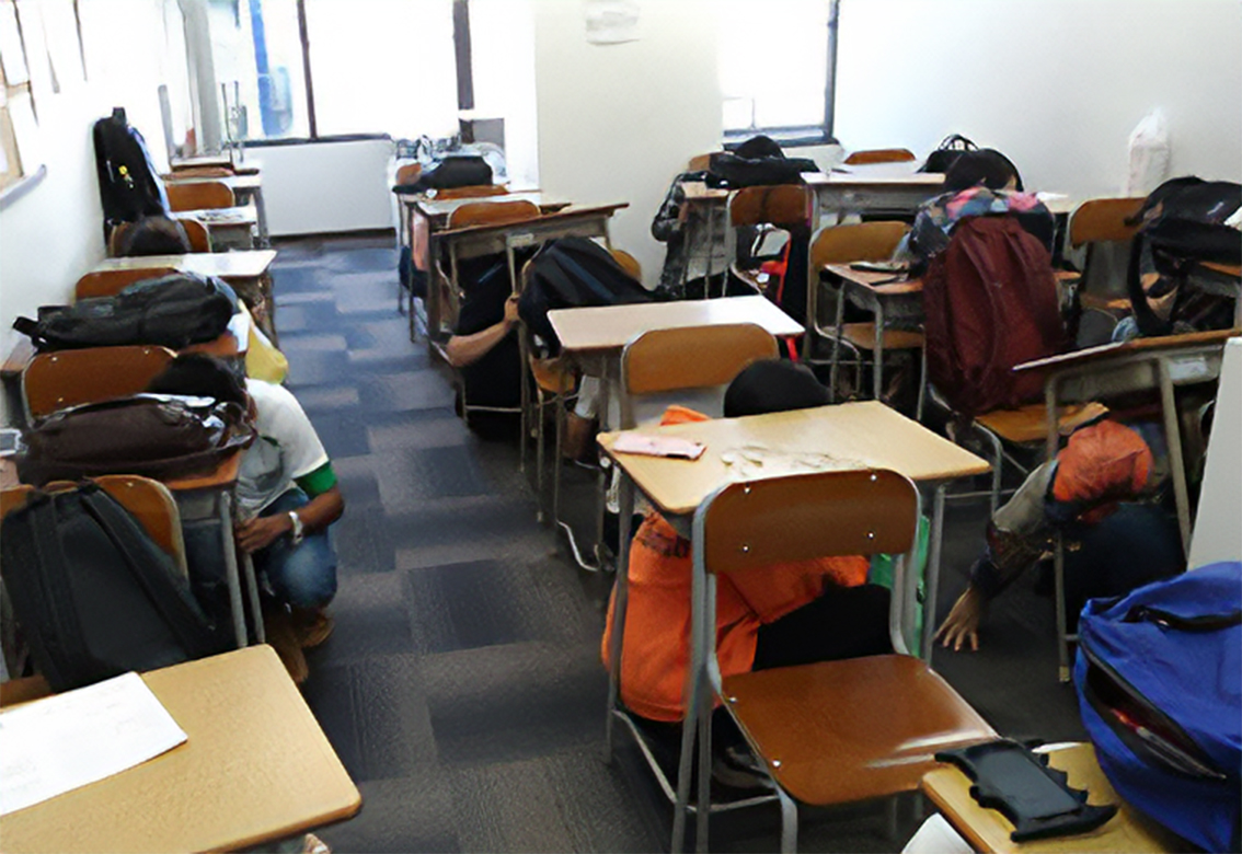 KLAでは、地震・火災・台風など災害発生時に留学生の安全を守るため、普段より情報の把握、避難訓練の実施や緊急連絡体制の整備など、防災対策に努めています。年に一度、「避難訓練」も行っています。