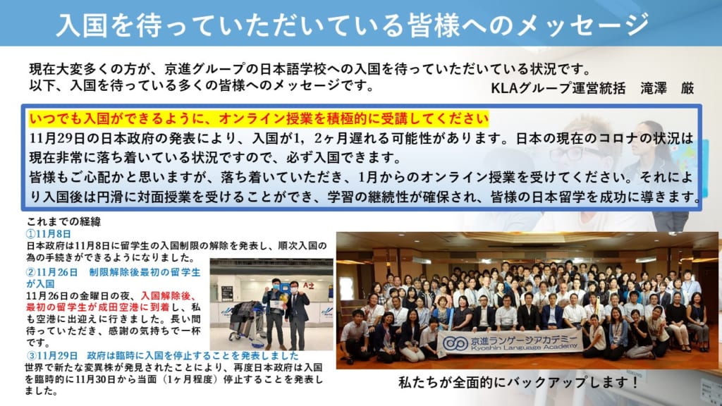 2. 2021年11月26日 入国制限解除後最初の留学生が入国