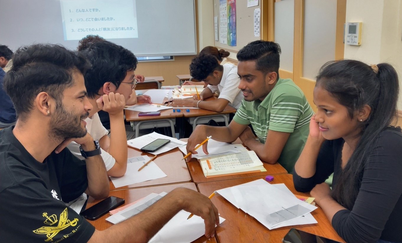 - 多国籍のクラスメートと一緒に勉強