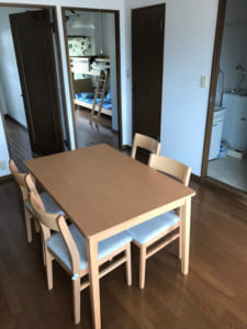 The dormitory is completely furnished-well appointed, like washing machine, dining table and chairs, refrigerator, bunk bed, bed clothes and so on.